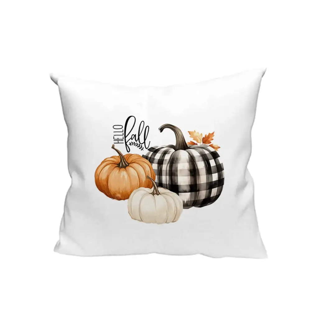 1 cuscino bianco con stampa a tema autunnale, perfetto come idea regalo in occasione dell'arrivo della stagione più colorata dell'anno!