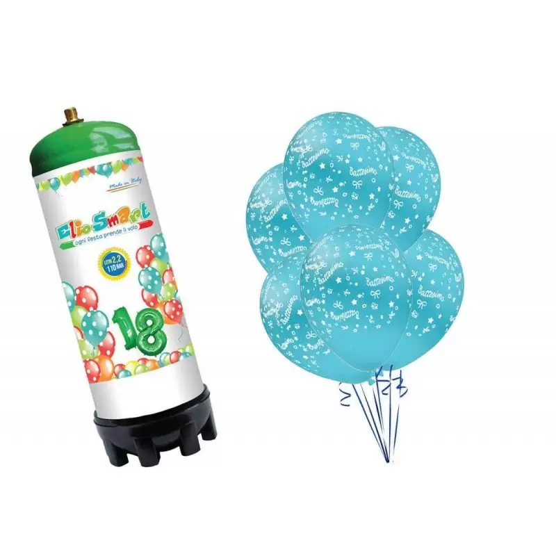 Riceverete una bombola ad elio da 1,7 litri e 25 plloncini in lattice stampati battesimo celeste
