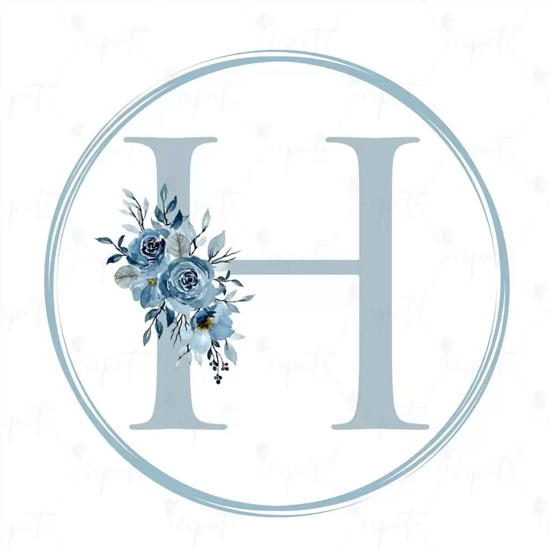 ADESIVO TONDO LETTERA H CELESTE FLORAL - 1 PZ