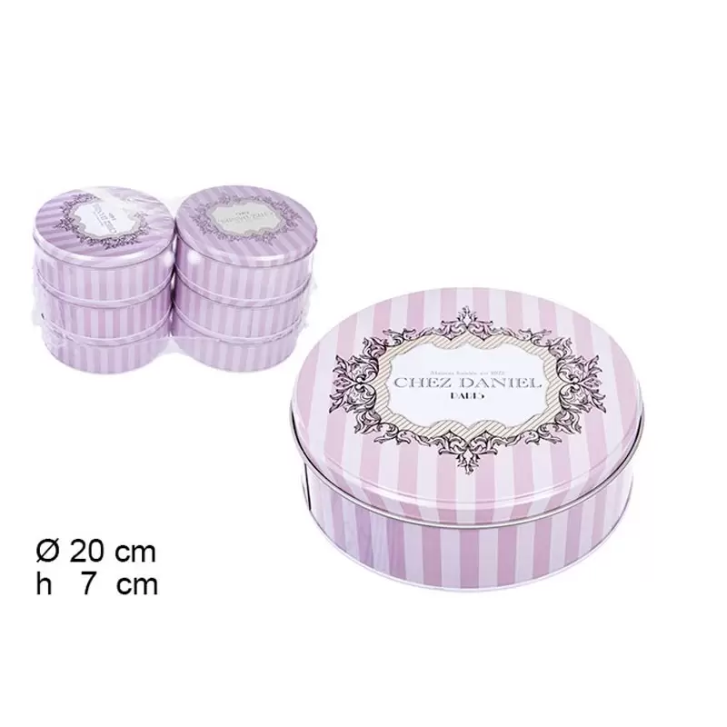 Bellissima scatola di metallo tonda perfetta per conservare e regalare biscotti. Codice: 105724