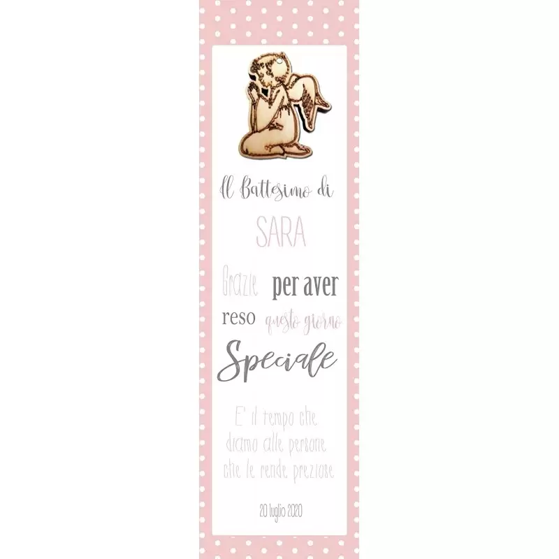 50 SEGNAPOSTO BATTESIMO ROSA CON ANGIOLETTI DI LEGNO PERSONALIZZABILI