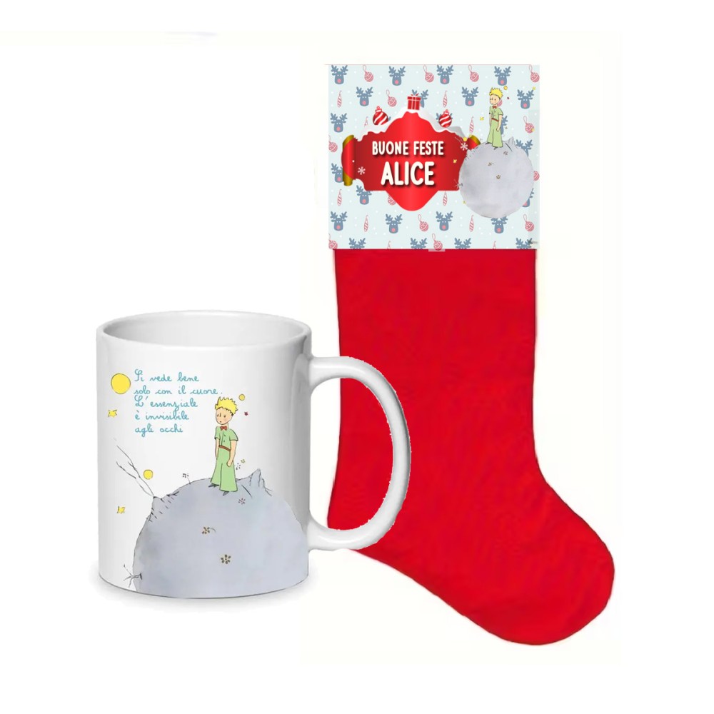 Calza della befana Piccolo Principe con etichetta e tazza personalizzabili