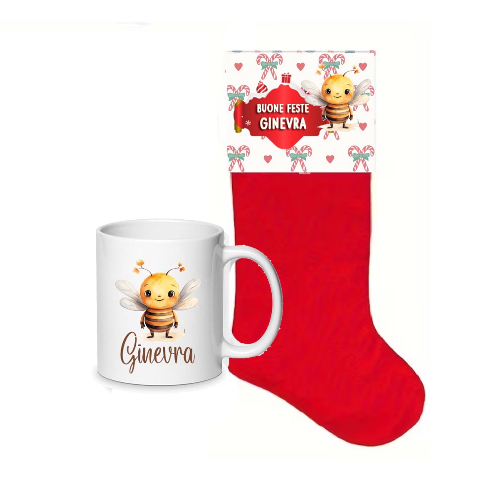 Calza della befana Ape con etichetta e tazza personalizzabili
