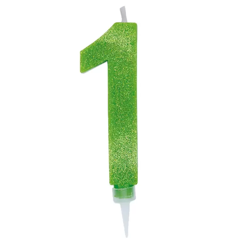 CANDELINA NUMERO 1 VERDE MELA GLITTER 15 CM