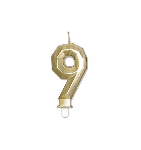 Candelina Diamant oro Metal 9 cm numero 9 72919