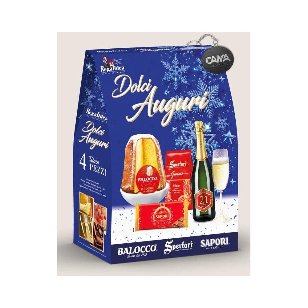 - CONTIENE 5 PEZZI: Panettone Balocco 500g/Gelatine Sperlari 100g/Cioccolato Pernigotti100g/Spumante Dolce Cuvee Il Mossiere bt 75cl