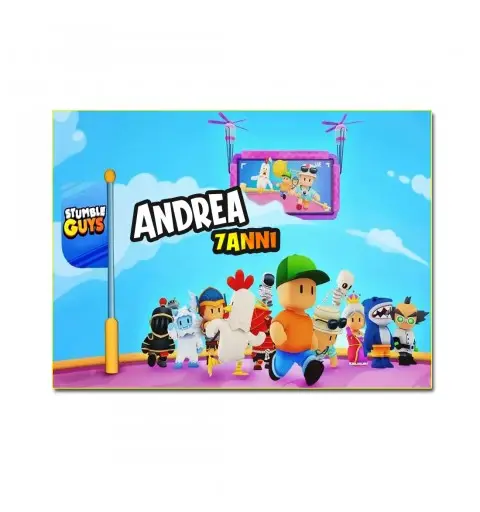 Ricevrete una deliziosa cialda in formato A4 rettangolare a tema Stumble Guys Personalizzabile .
