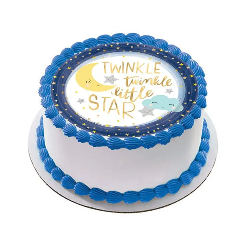 Una bellissima cialda rotonda per torte da 20 cm di diametro. Potrete indicare il testo che preferite stampare, in caso di mancata indicazione provvederemo ad inviarla neutra. La riceverete su un foglio A4 in ostia alimentare (da ritagliare con un padio di forbici da cucina)