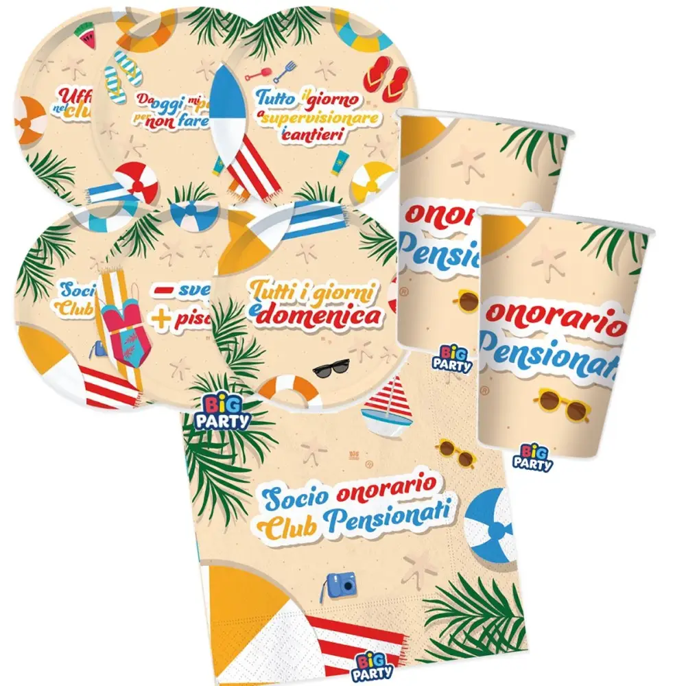 KIT N.2 FINALMENTE IN PENSIONE – COORDINATO FESTA PER 12