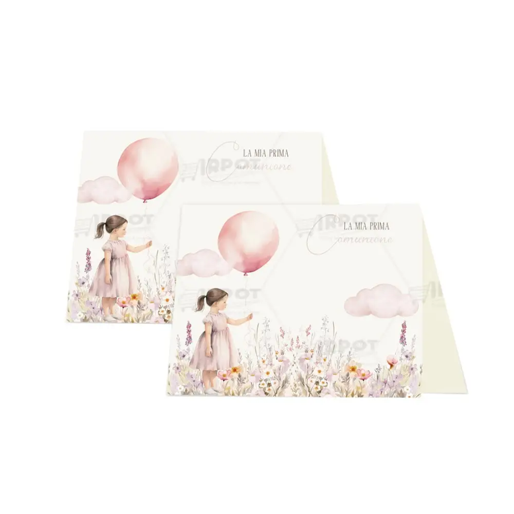 Targhetta segnaposto Comunione Bambina Palloncino Rosa
