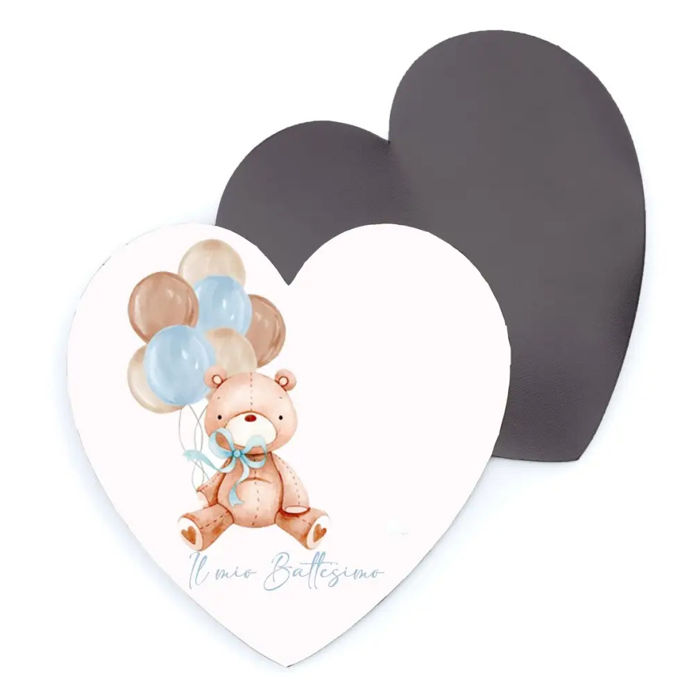 10 magneti (forma a scelta tra quelle proposte in foto ) con stampa a tema orsetto con Palloncini e testo personalizzabile! Dimensioni 6 cm circa