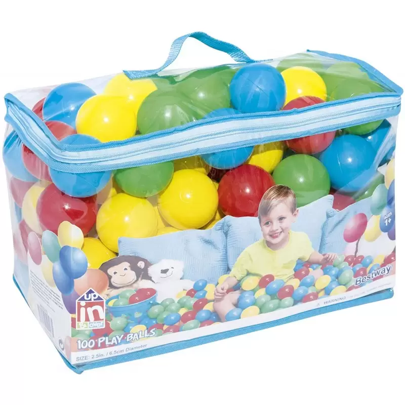 Un divertentissimo gioco: una sacca piena di 100 palline colorate in plastica, caratterizzate da cuciture lisce che garantiscono la totale sicurezza dei più piccoli, dimensioni: 6,4 x 6,4 x 6,4 cm. Molto leggere e facilmente trasportabili grazie alla borsa con manico. Codice: 52027
