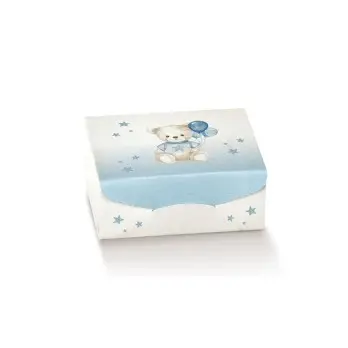 20 bellissime scatoline in cartoncino, con orsetto azzurro o rosa, ideale per bomboniere o segnaposto per nascita o battesimo di un bambino! basta inserire i confetti all'interno e la bomboniera è pronta! scegli il colore nel box della personalizzazione
