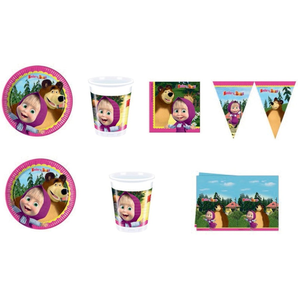 IRPot - KIT N 13 COORDINATO MASHA E L'ORSO DECORAZIONI TAVOLA COMPLEANNO BAMBINA