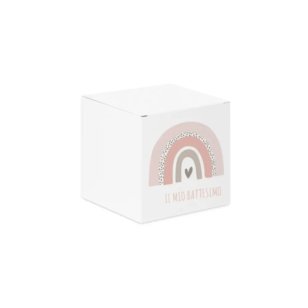 Scatolina portaconfetti cubetto battesimo Arcobaleno Boho Rosa - 50 pz