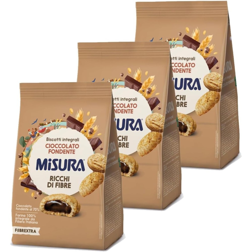 3 X Misura Biscotti Integrali Ripieni di Cioccolato Fondente100% Farina Integrale Confezione da 260 gramm
