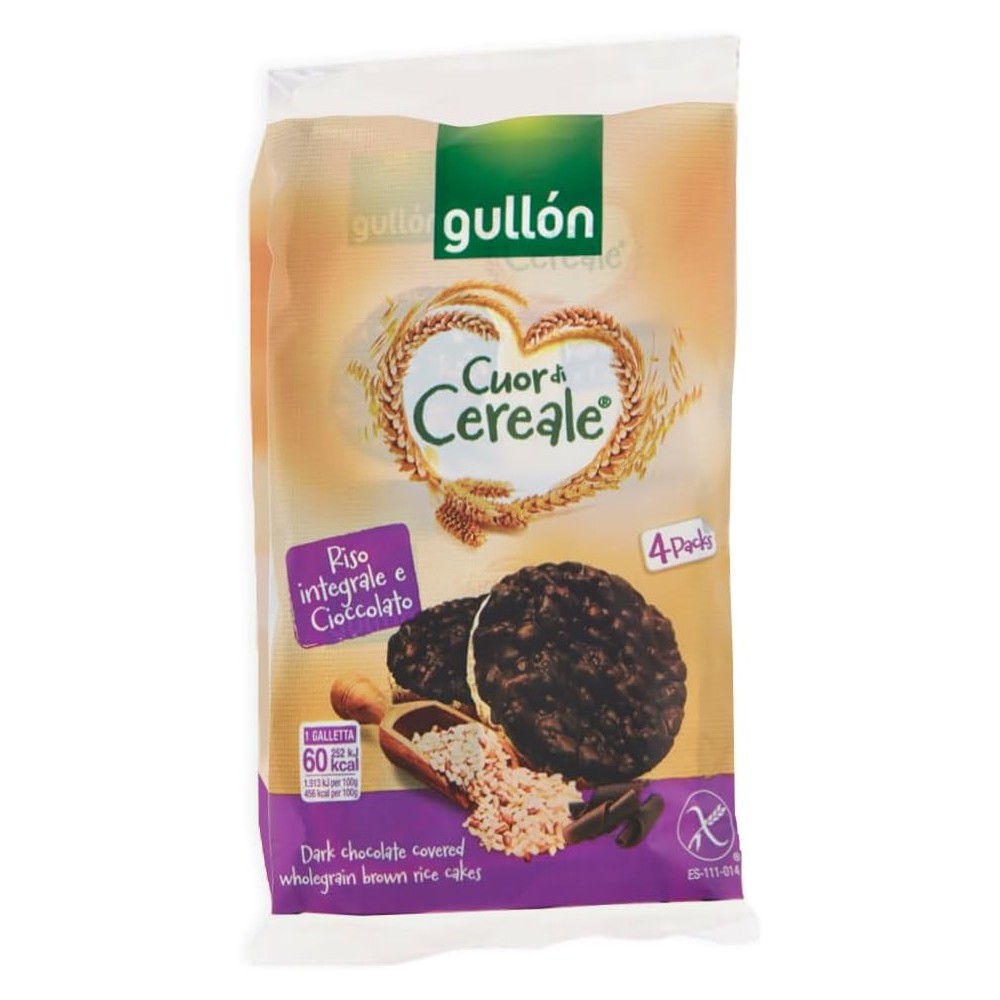 Gullon Cuor di Cereale Gallette di Riso Integrale Ricoperte di Cioccolato Fondente 105,2g