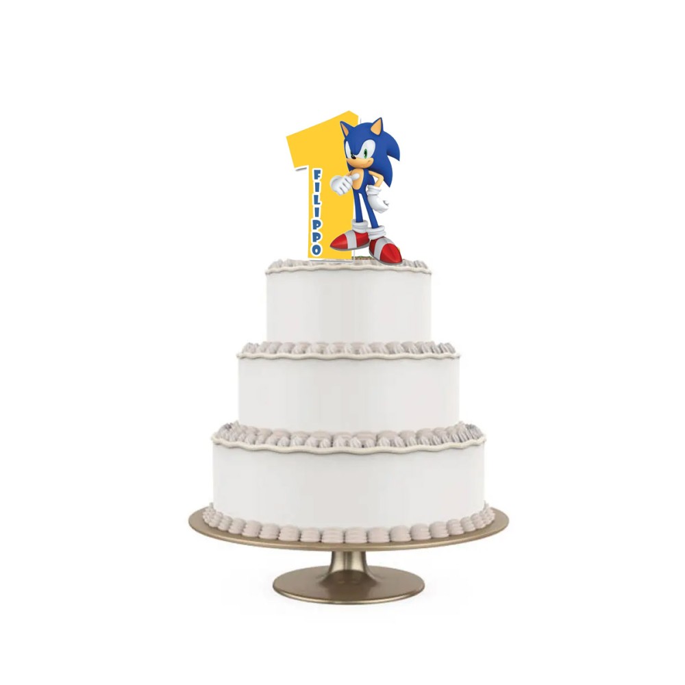 Topper in polistirolo Sonic, ideale per decorare la torta di compleanno del tuo bambino o della tua bambina