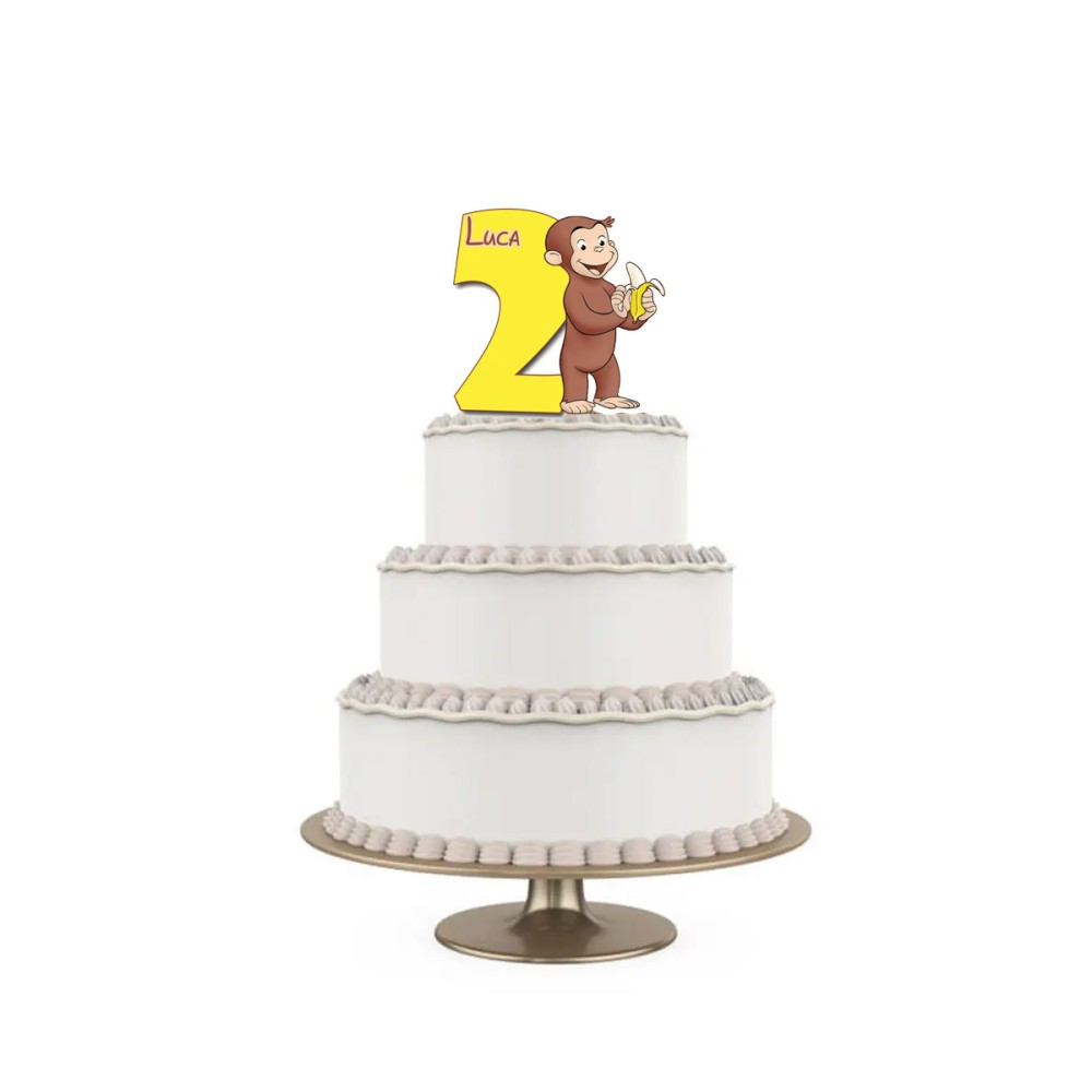 Topper Torta polistirolo Curioso come George Sagomato Personalizzabile 15 cm
