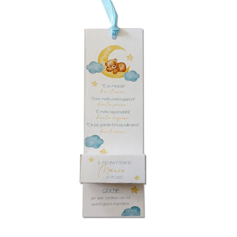 30 segnaposto in cartoncino rettangolare a tema orsetto per il battesimo del vostro piccolo!