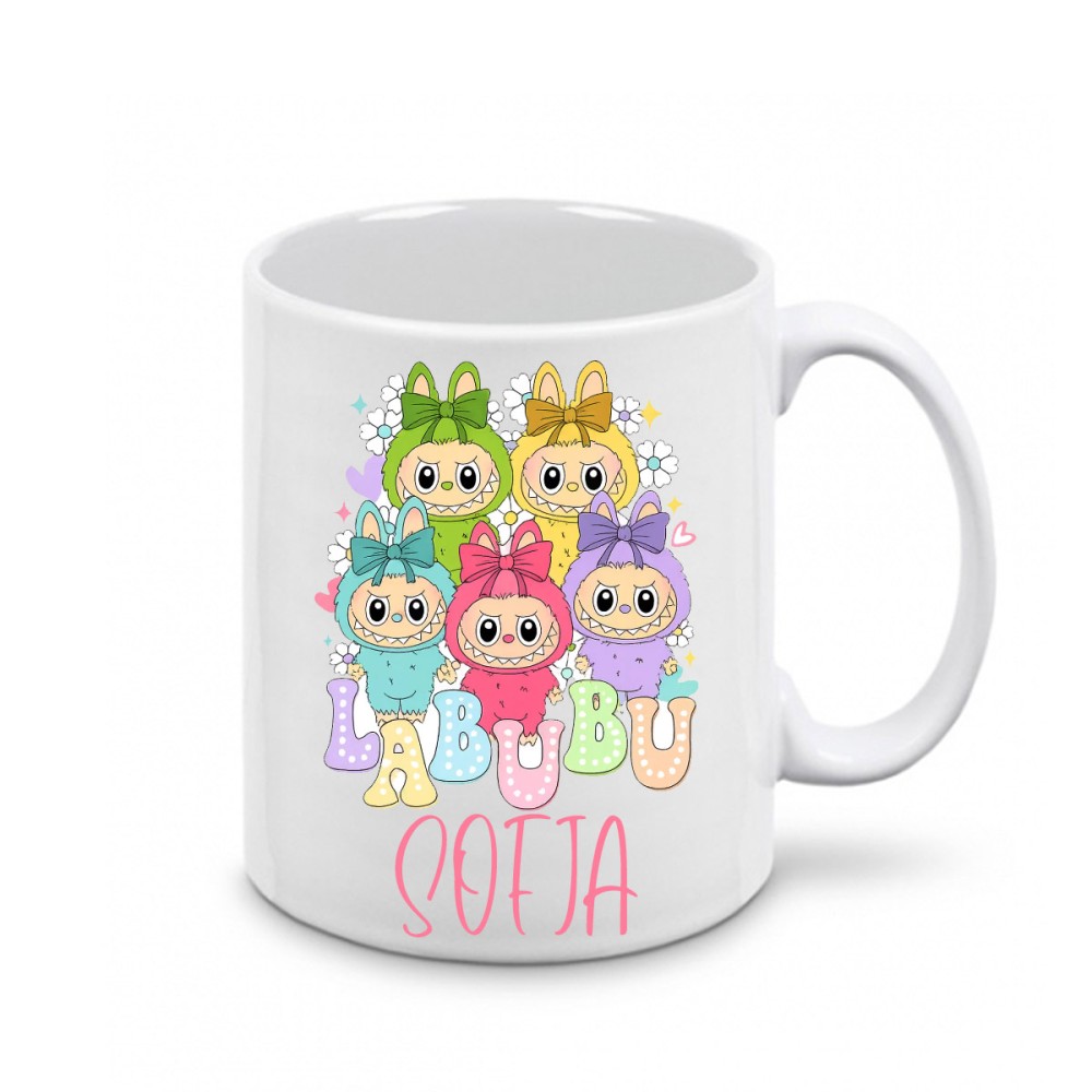 Bellissima tazza bianca in ceramica con stampa Labubu , personalizzabile con nome.