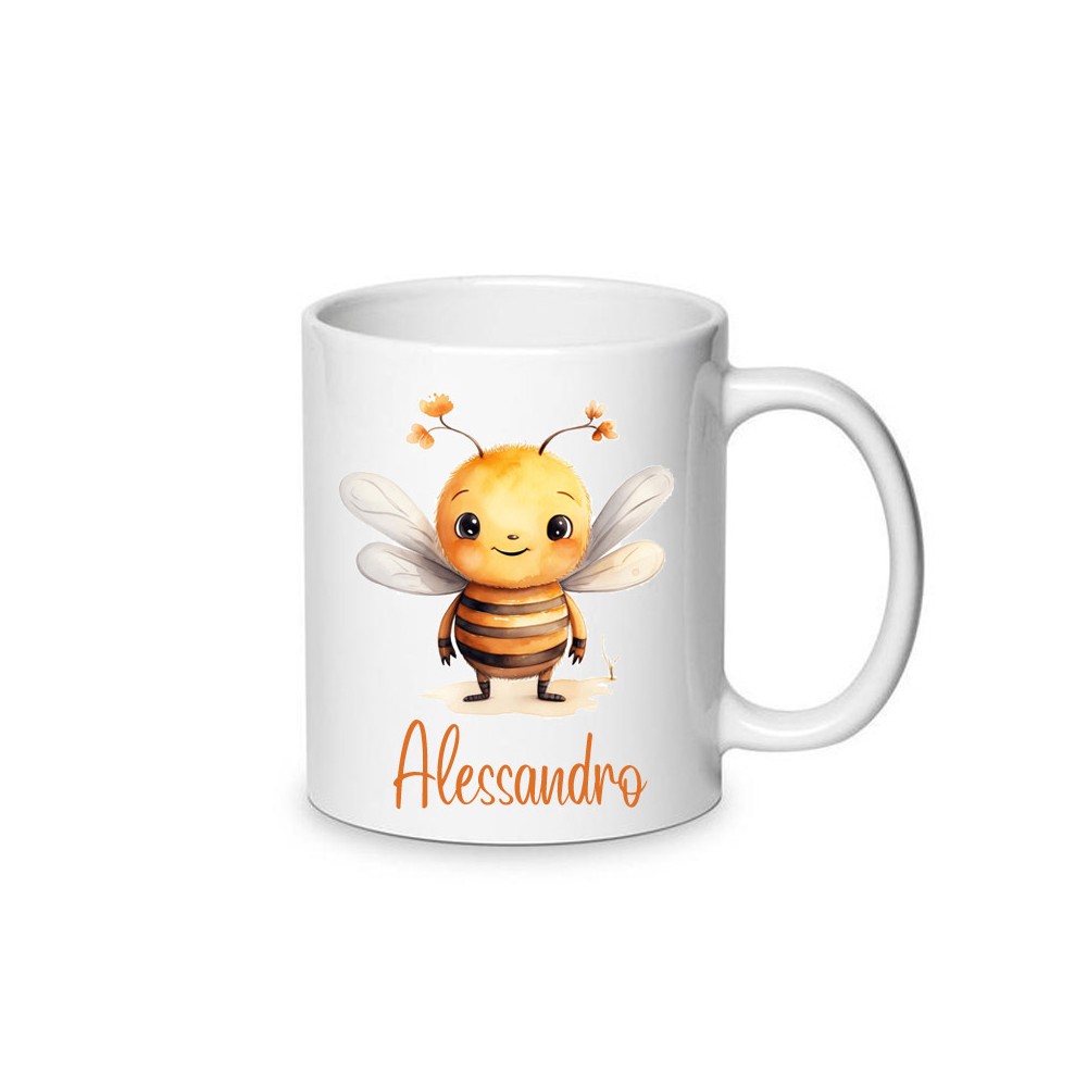 Bellissima tazza bianca in ceramica con stampa Ape , personalizzabile con nome.