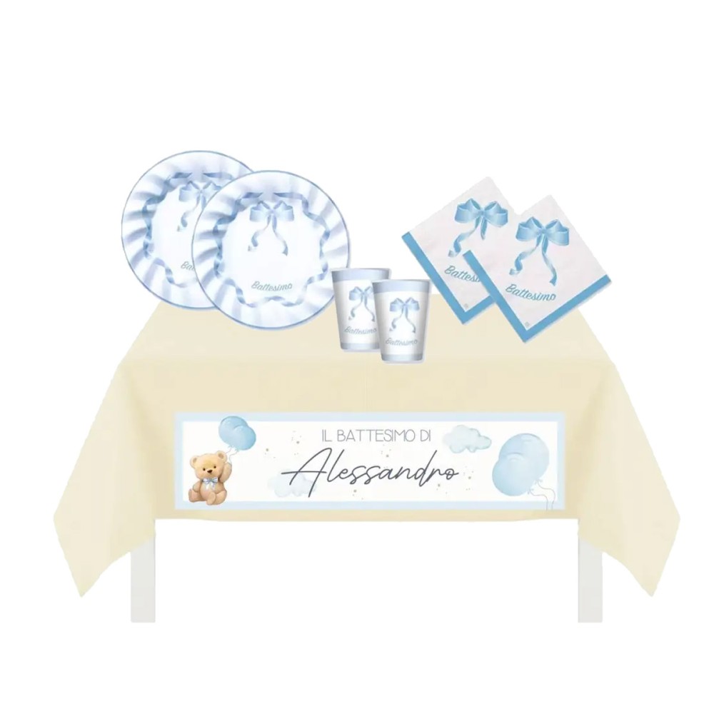 Kit 8 persone con Tovaglia TNT personalizzabile Battesimo celeste