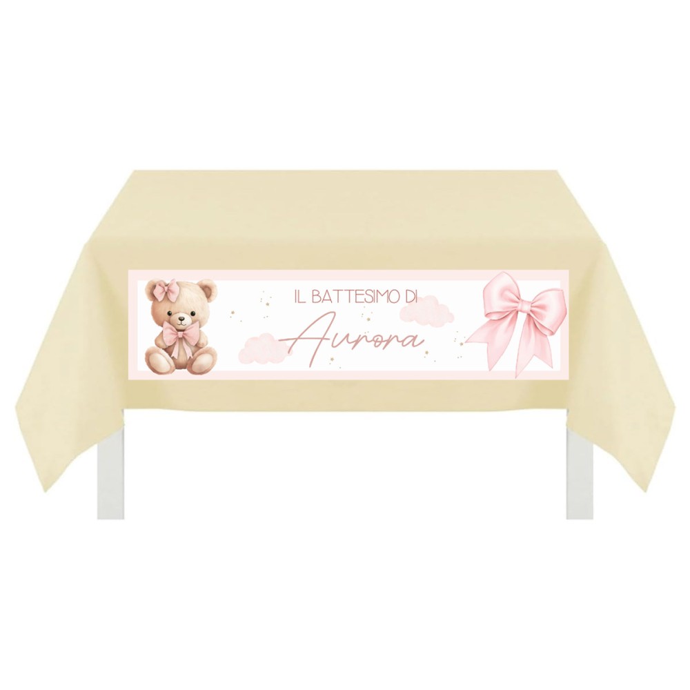 LoginTovaglia con bande personalizzabili a tema attesimo Orsetta fiocco rosa